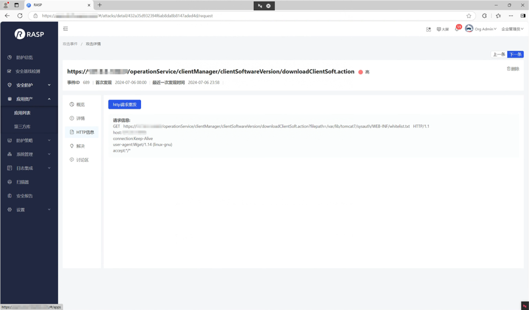 3. 上下文分析: RASP进一步分析请求的上下文环境,确认这不是一个正常的业务请求,而是一个潜在的安全威胁。