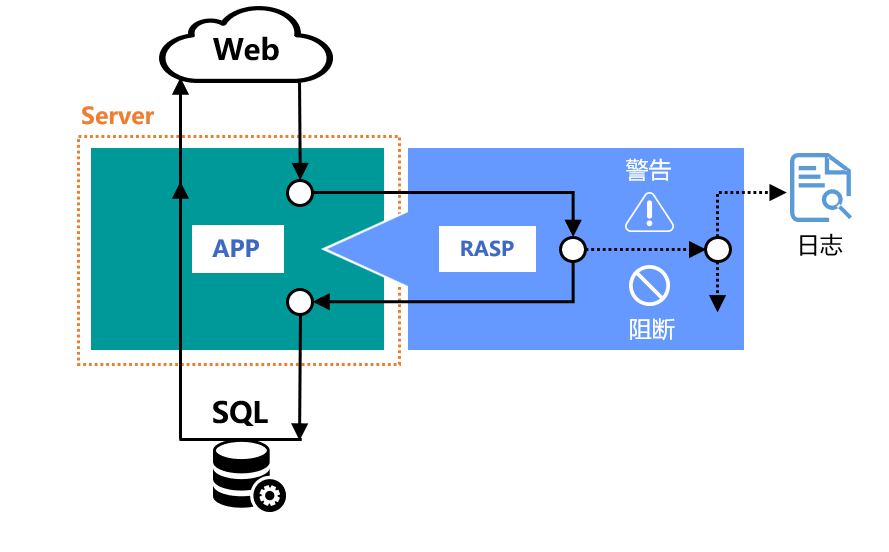 4. 阻断攻击: 一旦确认请求具有恶意性,RASP立即阻断该请求,防止其到达后端服务。