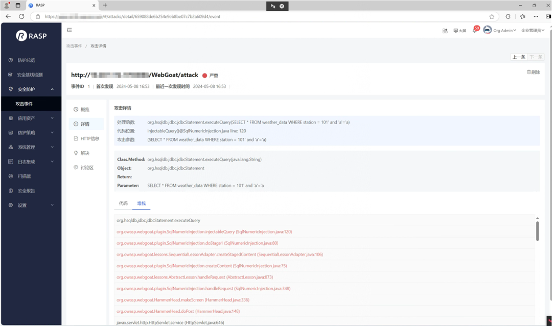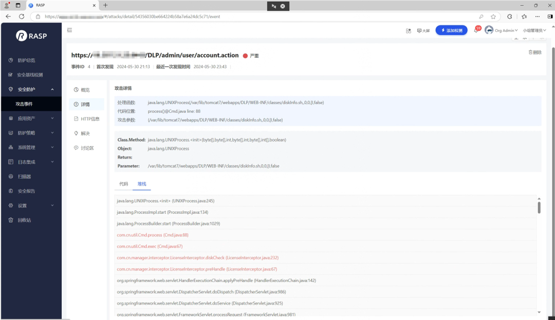 下面我们以其中的三次拦截作为RASP防护原理和效果的示例。