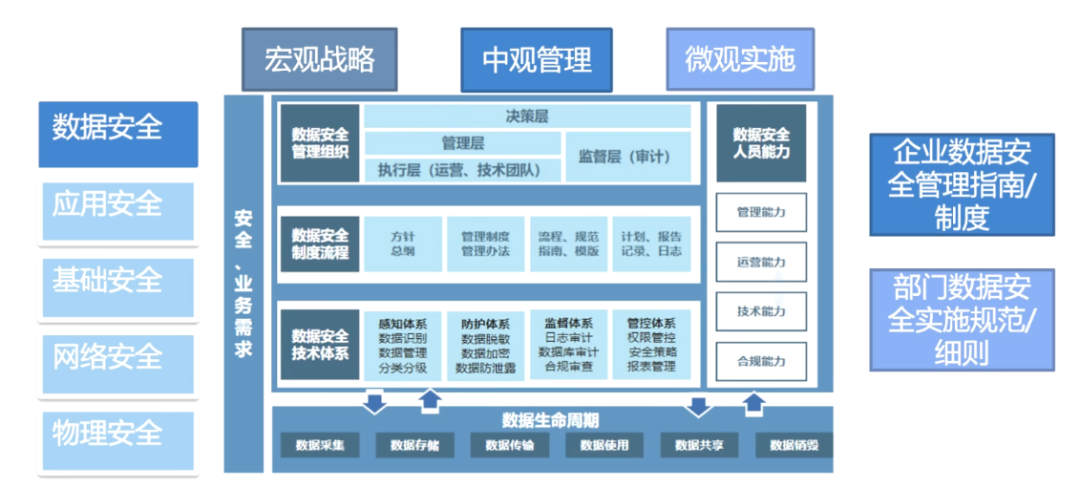 在构建数据安全运营体系时,我们需要从多层次、立体化的角度进行全面考虑。确保数据安全不仅仅是一个简单的任务,而是需要从物理安全、网络安全、基础安全、应用安全到数据安全,每一个层面都做好相应的防范。