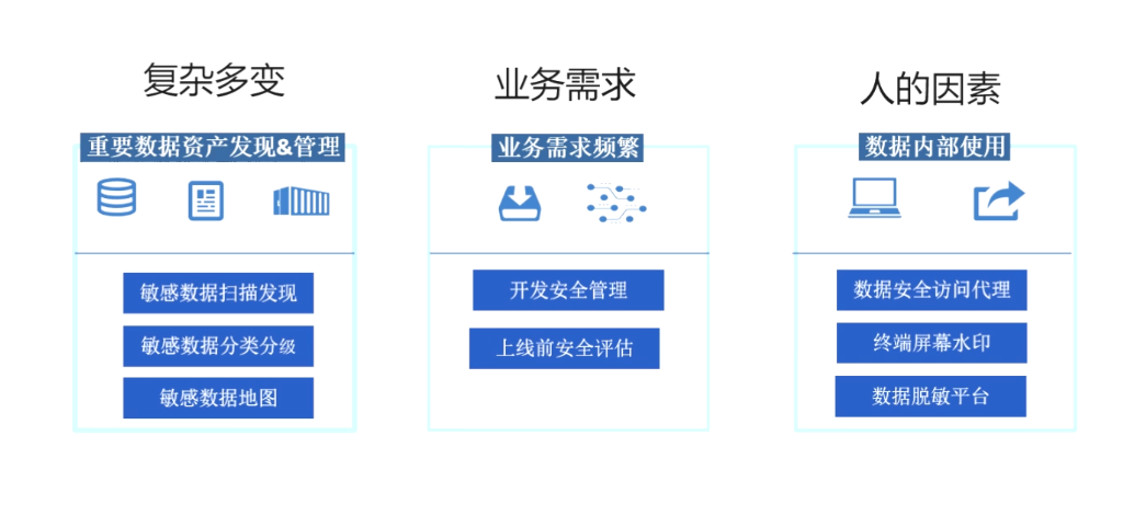 随着企业系统架构升级,尤其是云技术的广泛应用,大多选择私有云或公有云部署,导致数据进一步集中化,数据安全风险迅速增加。