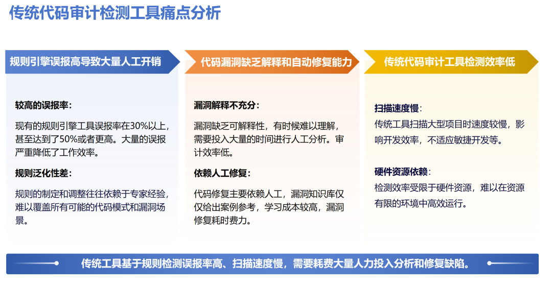 随着软件的复杂度和多样性的增加,安全漏洞的种类也不断发展,编写和维护规则集变得困难,且人的主观性会影响误报率和漏报率,这就大幅度降低了工作效率,也是目前企业反馈的痛点。
