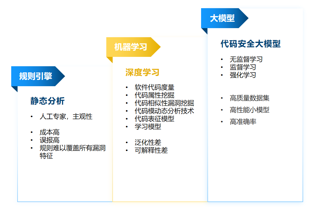 软件缺陷检测从技术路线看,分为基于规则的检测、基于机器学习的检测和基于大模型的检测。