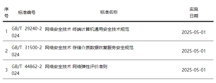 11月16日,根据2024年10月26日国家市场监督管理总局、国家标准化管理委员会发布的中华人民共和国国家标准公告(2024年第24号),全国网络安全标准化技术委员会归口的3项网络安全国家标准正式发布。具体清单如下: